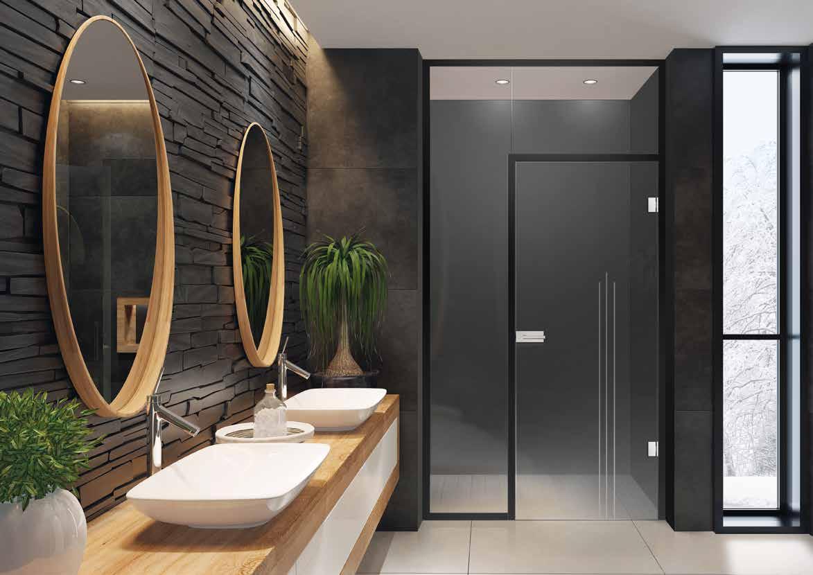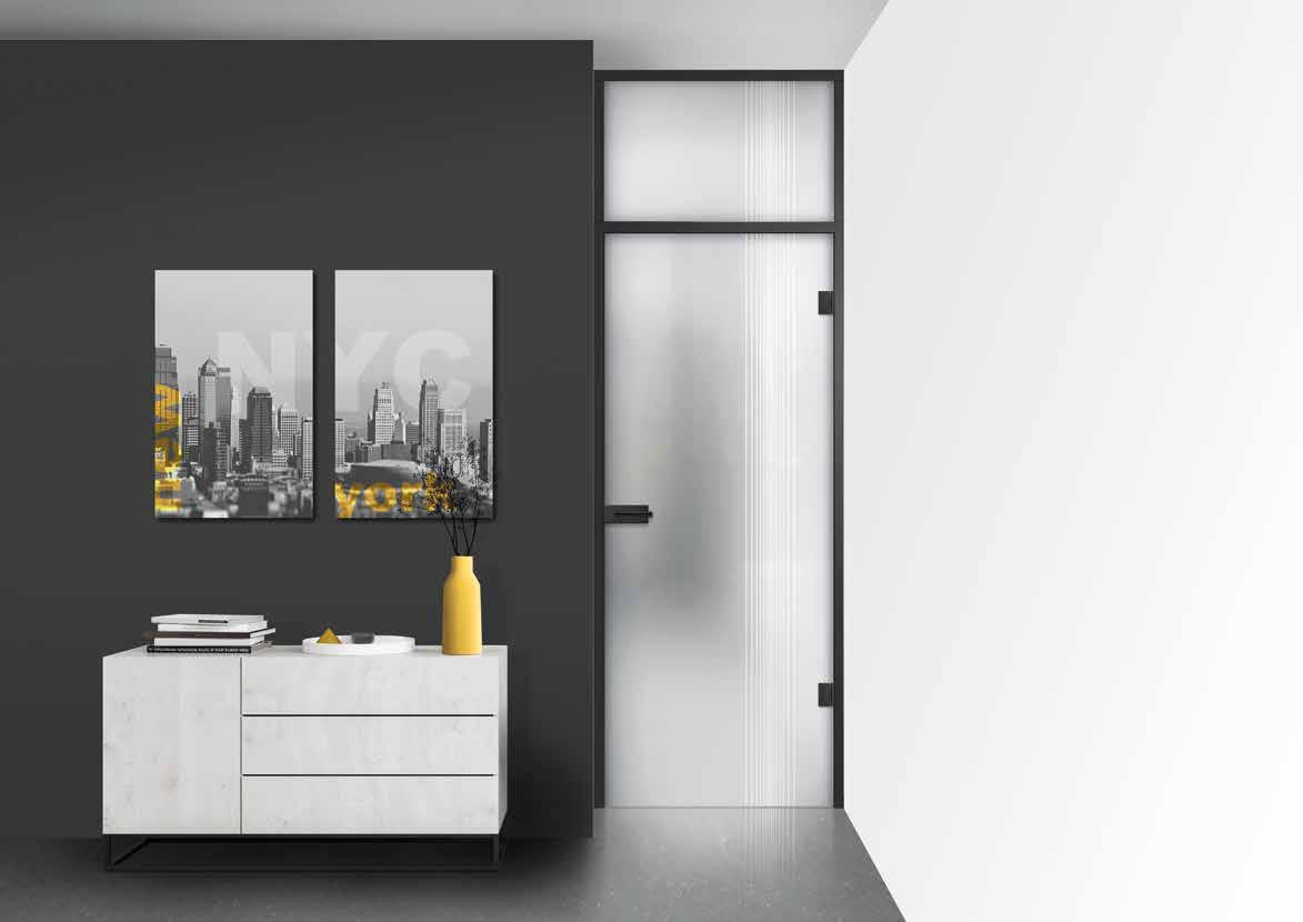 Glasdesign: linesPlus Typ 5 Schwarz auf Satinato U-Profil und Beschläge: Schwarz ähnl. RAL 9005