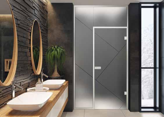 Glasdesign: Modus, Motiv klar, Fläche matt Seitenteile: Float hell WA-Profil und Beschläge: ähnl. Edelstahl matt