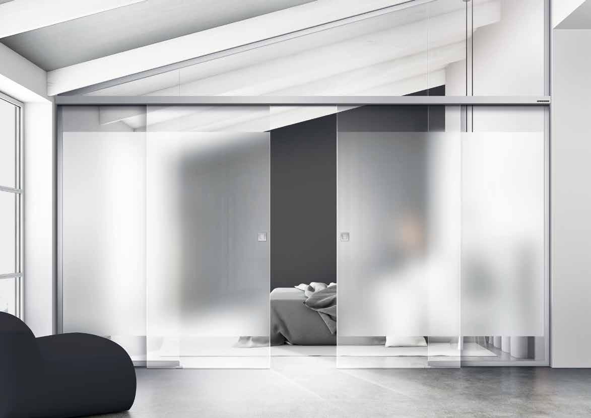 Perfekt ist auch die Abstimmung der Oberflächenvarianten von alumin impulse auf die Tvin 2.0 Schiebetürsysteme und die weiteren Glastürbeschläge von licht & harmonie.