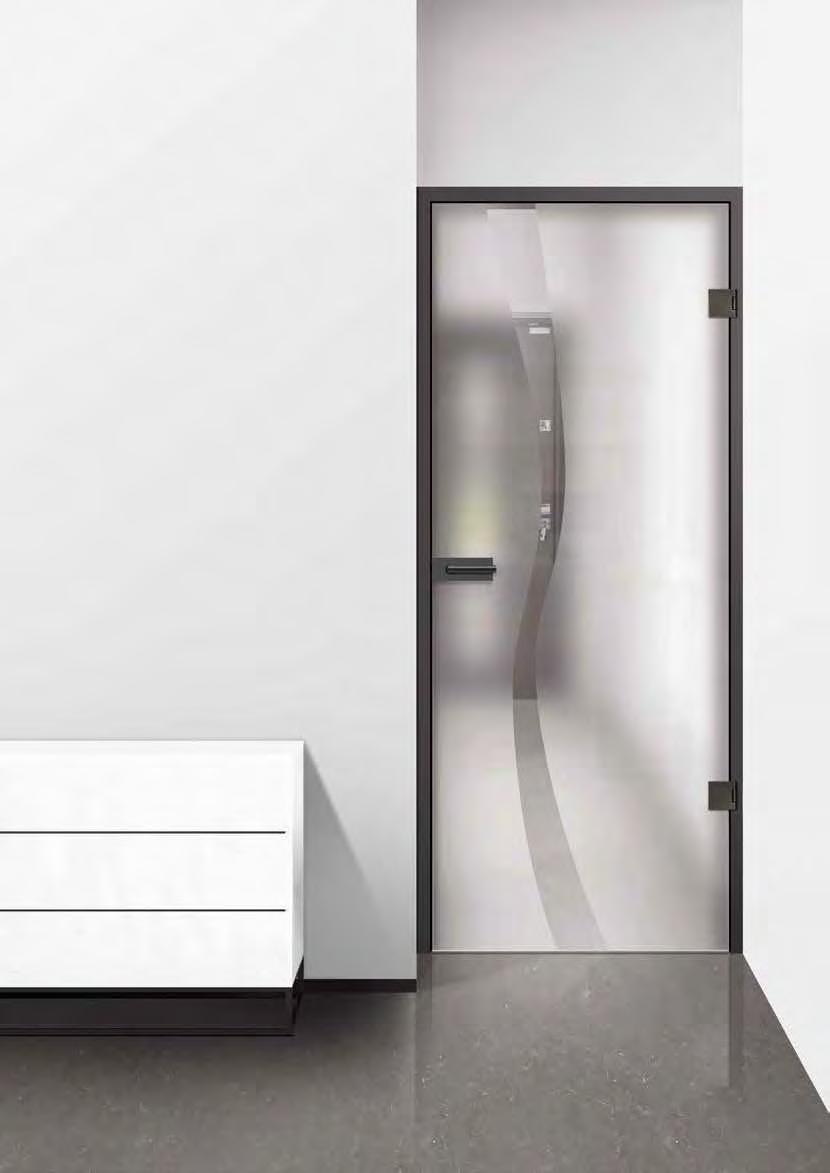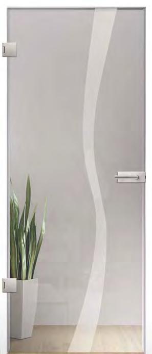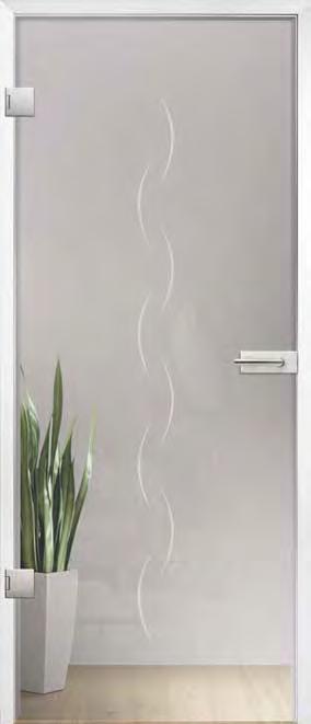 Das sanft geschwungene Glasmotiv Wave Typ 8 ziert die Ganzglastür und verleiht ihr eine außergewöhnliche Note.