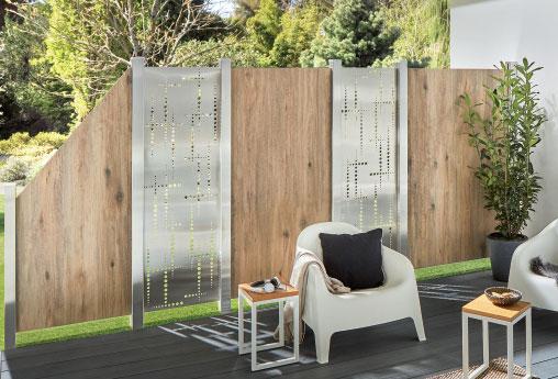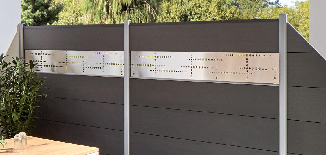 Dekorprofile und Designgitter in unterschiedlichen Materialien und Designs bieten kreative Möglichkeiten um Ihre Zaunanlage indiduell zu gestalten.