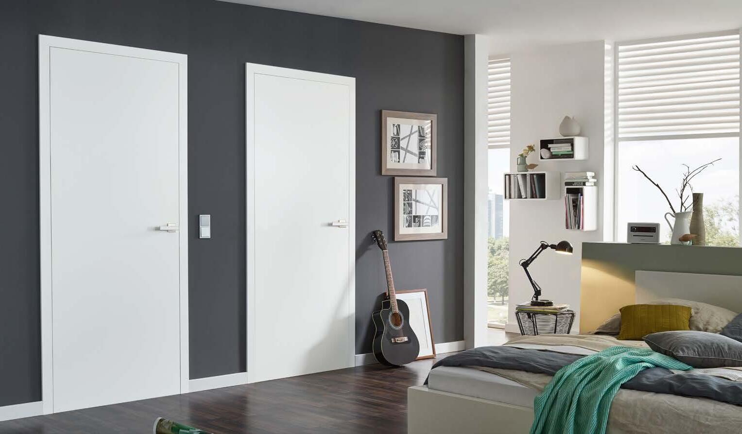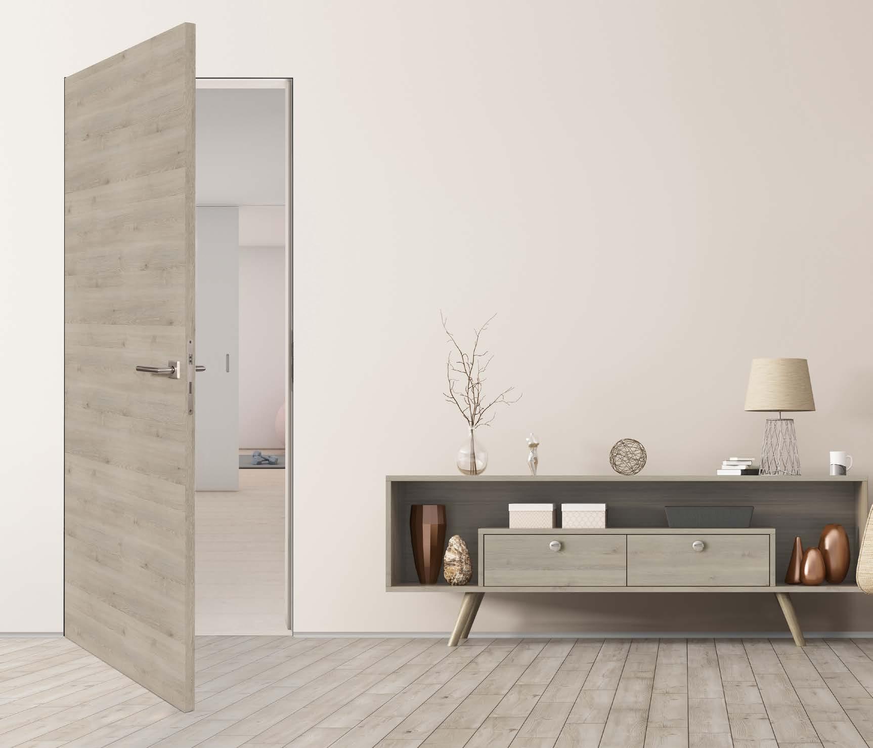 Bei geschlossener Tür bildet das Türblatt eine bündige Fläche mit der Wand.