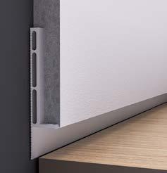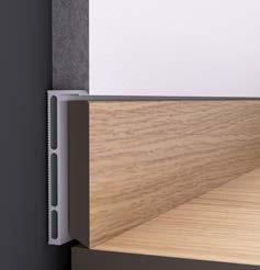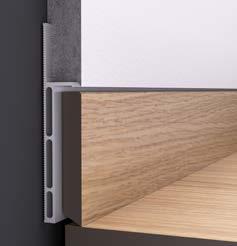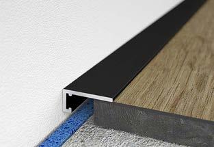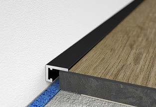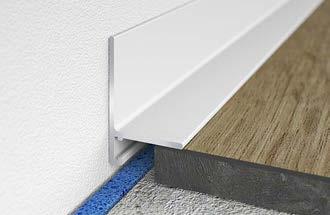Das Sockelprofil SL16X5 stellt einen dezenten und innovativen Abschluss von Bodenbelag zu Wand, Fenster(rahmen) oder Treppenstufe her – dort, wo Anschluss- und Dehnfugen bautechnisch eingehalten werden müssen.