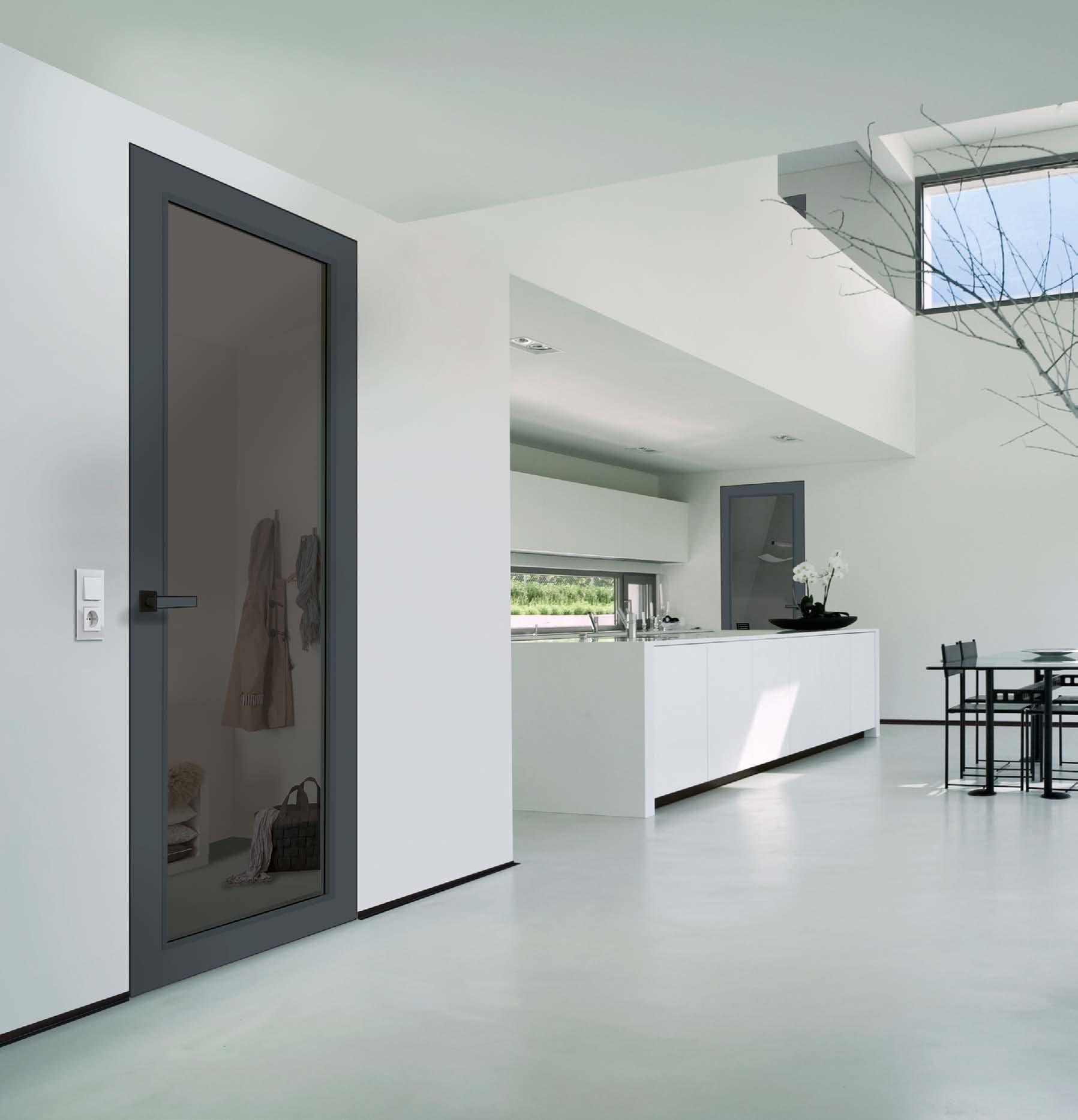 Die Aluminiumzarge ohne wandseitig sichtbaren Aluminiumrand hat sich bewährt. Durch die in dem Zargensystem integrierten Halterungen für das einklickbare Putznetz, die Eckverbinder und Distanzschienen, ist eine einfache Montage gewährleistet. Das einklickbare Putznetz verhindert Haarrissbildung. Durch die fast unsichtbaren Zargen stehen die Türen im Mittelpunkt und können gekonnt Akzente in Ihrem Wohnbereich setzen.