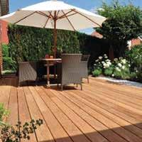 Eines der hellsten südamerikanischen Harthölzer (auf Anfrage FSC®-zertifiziert), das mit seinem auffallenden, mandelfarbigen Ton auch ausgefallene Wünsche an ein individuelles Erscheinungsbild der Terrasse erfüllt. Glatt gehobelt kommt das gleichmäßige Oberflächenbild besonders gut zur Geltung. Der anfängliche mandelfarbige Ton dunkelt erst bräunlich nach und bekommt dann eine sehr schöne graue Patina. Aufgrund dieser Patina wird oftmals auf eine Ölbehandlung verzichtet.