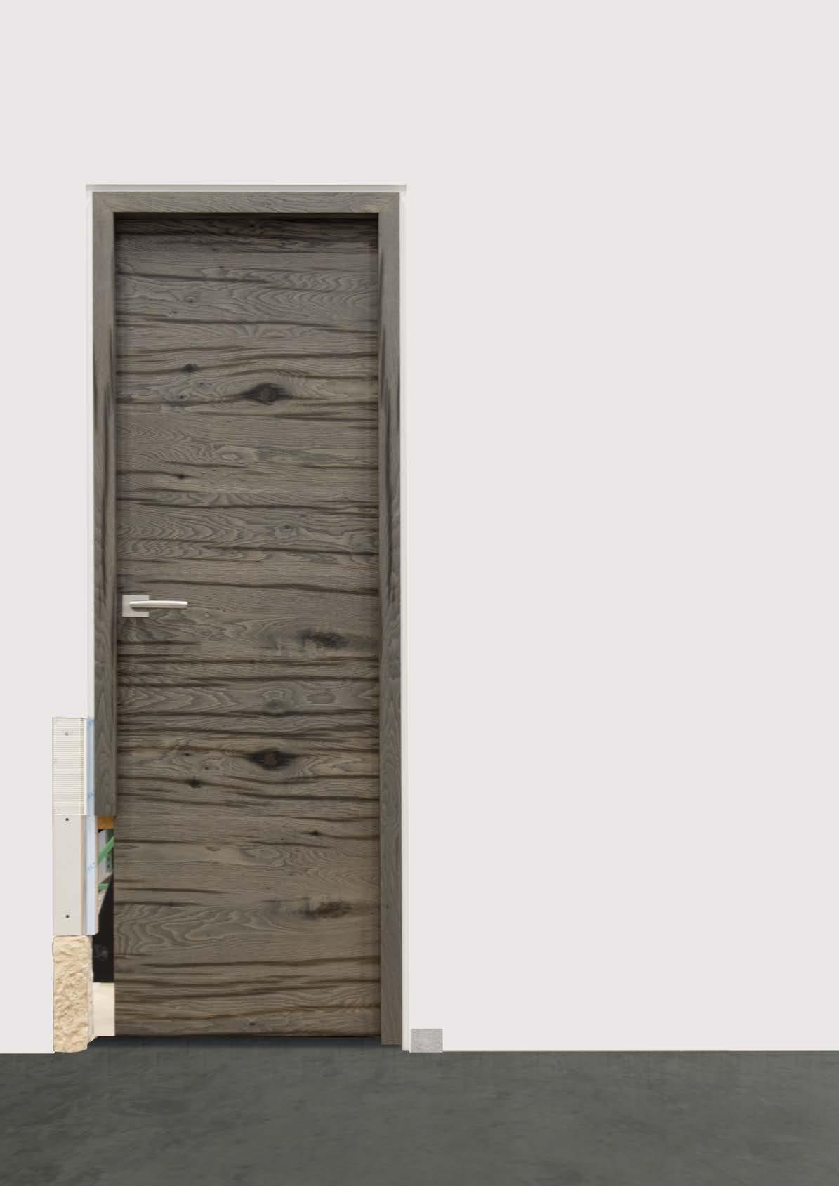 WABU 4 ist im Prinzip dieselbe Konstruktion wie WABU 3, nur öffnet die Türe wie gewohnt zum Flur hin. Die beiden Montageschritte erfolgen identisch zur WABU 3 Aluminiumzarge. Hier empfiehlt es sich ebenfalls, flächenbündige Sockelleisten zu planen.