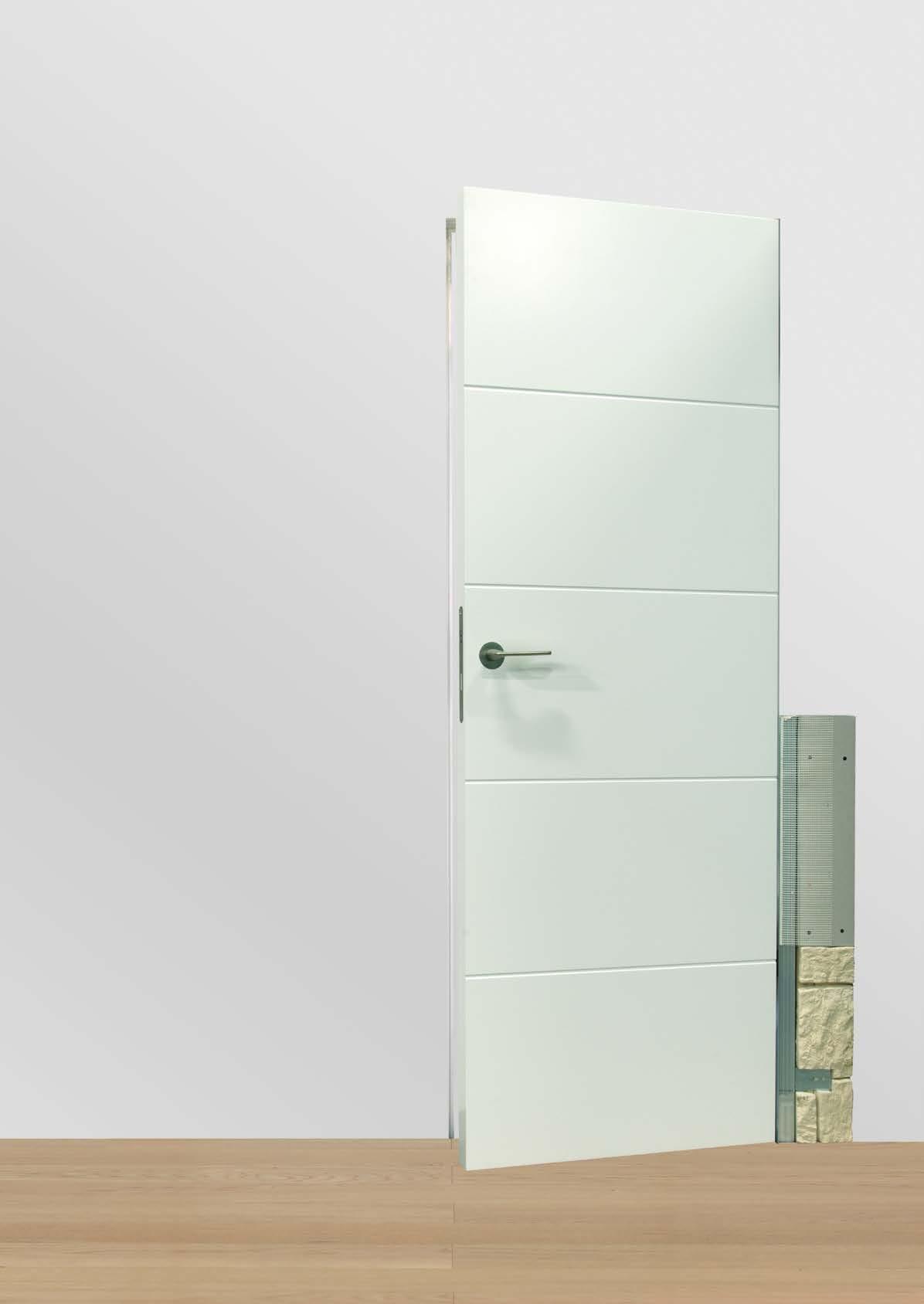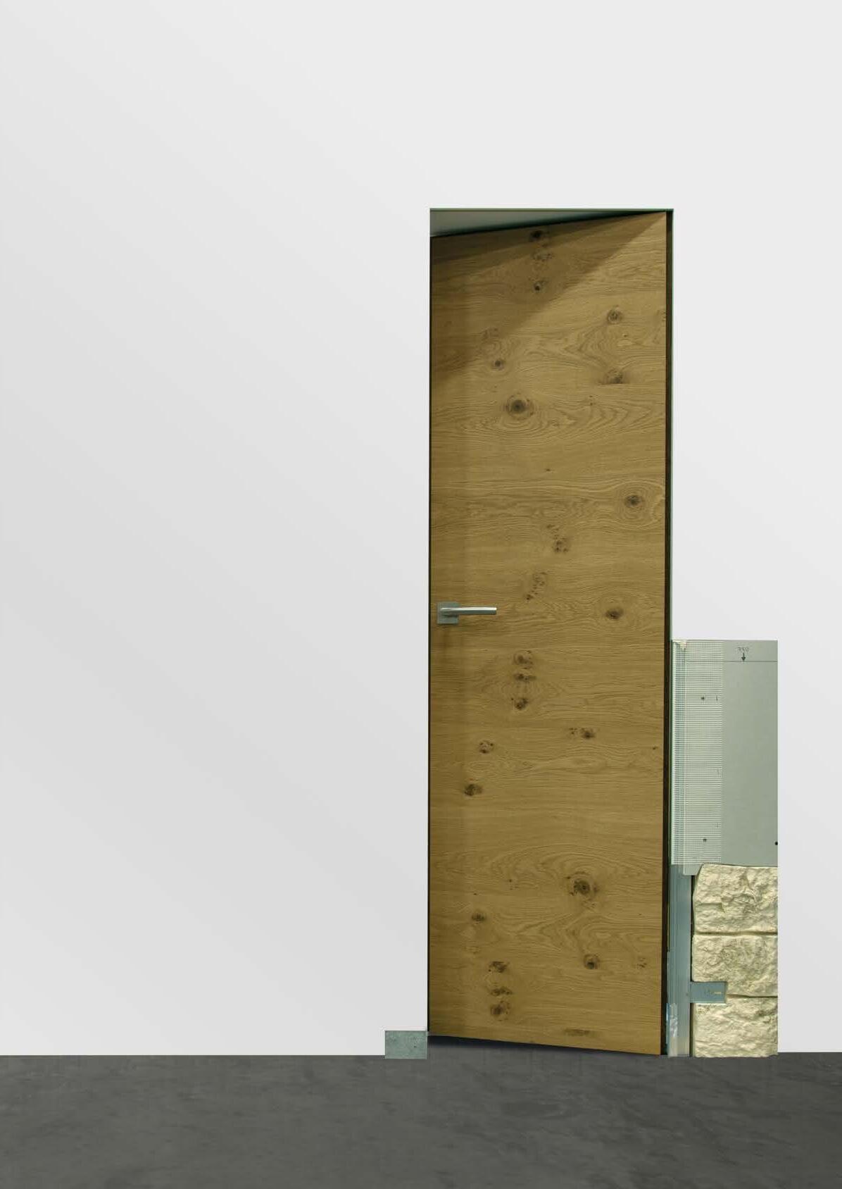 WABU 3 zeichnet sich dadurch aus, dass hier keine Zarge zu sehen ist und die Türe flächenbündig in der Wand erscheint. Eine zusätzliche Besonderheit bei diesem System ist, dass das Betreten des dahinter befindlichen Raumes nach innen erfolgt. Im ersten Montageschritt wird die Aluminiumzarge geliefert, diese wird montiert, danach erfolgen die Putzarbeiten, die Estricharbeiten oder ähnliches. Im zweiten Montageschritt liefern wir das Beschlagholz inkl. Bänder und Schließblech und das stumpfe Türblatt. Bei diesem System empfiehlt es sich bei der Planung auch flächenbündige Sockelleisten zu integrieren.