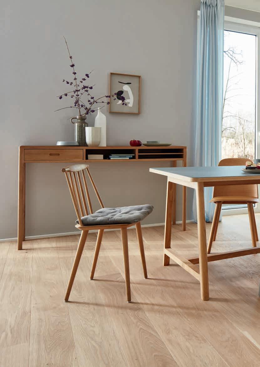 Wer sich für einen Holzboden entscheidet, entscheidet sich für ein Stück edler Natur im Haus. Die Struktur, die typische Maserung, die feine Oberfläche des Holzes, das Echte – all das soll spürbar sein und geschützt werden.