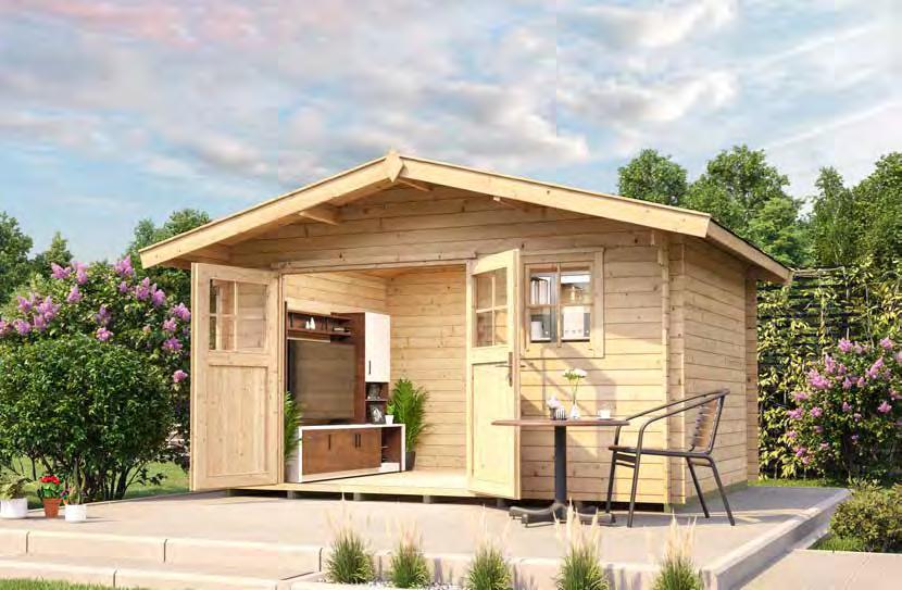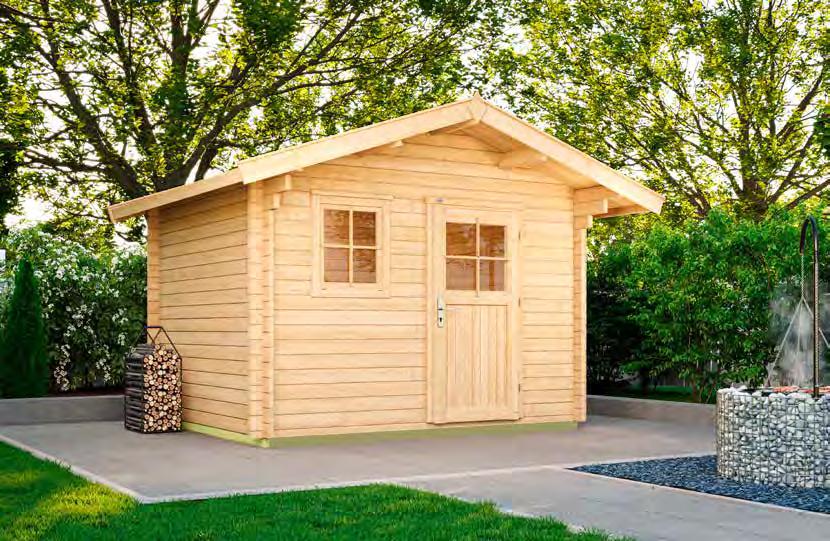 · Wand: 45 mm Blockbohlen mit Nut und Feder mehr Stabilität: durch elegante Metall- Eckverbindungen und 4 verzinkte Metallstützen zum Einbetonieren