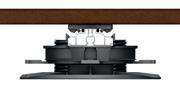Die für Fliesen oder rauen RohBeton konzipierten Schienen können durch Keile oder Unterlagen ausgerichtet werden, so dass Regenwasser abfließen kann. Diese Konfiguration reduziert die Gesamthöhe des Holzdecks auf ca. 40 mm.