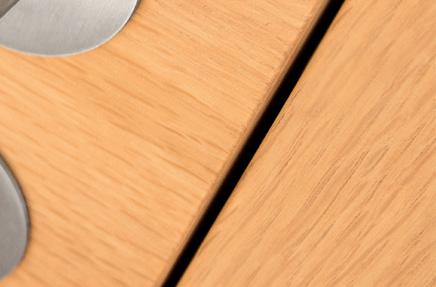 Dezente Fräsungen – dezente Kante. Wir empfehlen unseren Kantentyp A9 mit einer 2 mm Fase.