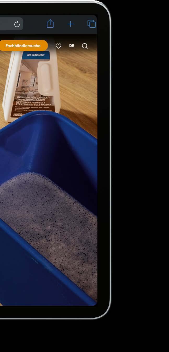 Flecken auf MEISTER-Laminat, die durch wasserfeste Filzstifte, Nagellack, Wachsmalstifte, Kreide, Speiseöl, Essig, Farben und Lacke verursacht wurden, sind kein Problem mehr. Warum? Weil kleinflächige Verschmutzungen mithilfe von Aceton, Verdünnung oder Alkohol rückstandslos entfernt werden können. Das macht Laminat einzigartig, denn diese Art der Reinigung lässt keine andere Art von Hartbodenbelägen unbeschadet mit sich machen!