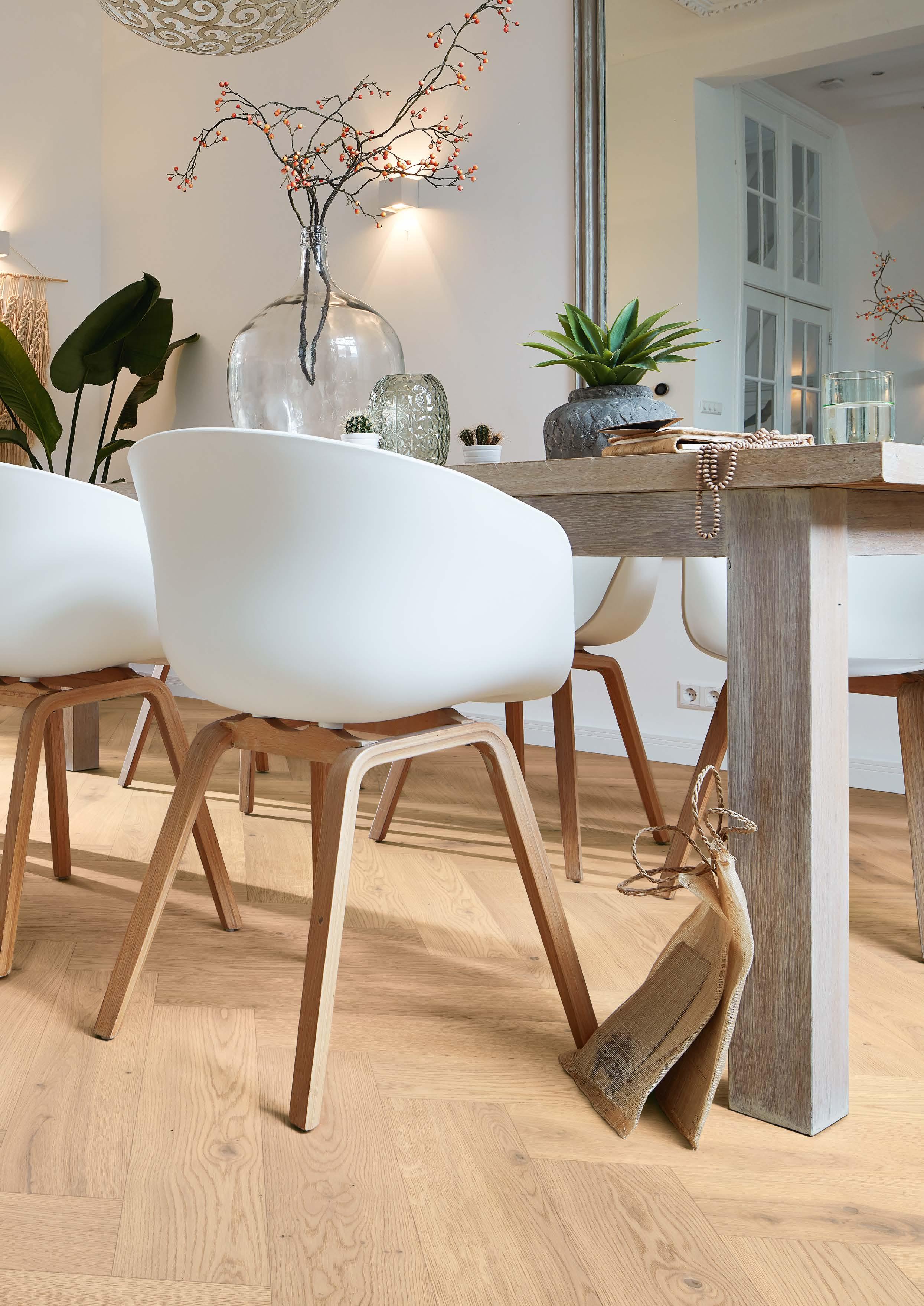 Regelmäßige Reinigung und Pflege sind wichtig, damit Ihr Boden lange schön bleibt und die Oberfläche ihre schützende Funktion behält. Alle Informationen zu passenden Reinigungsmitteln, der Pflege für geölte und ultramattlackierte Oberflächen und sonstige Tipps zur Werterhaltung finden Sie unter www.meister.com/ de/beratung.html und auf der Produktseite zu Parkettboden: www.meister.com/de/ produkte/parkett.html