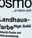 Die offenporige, ölbasierte Landhausfarbe erhalten Sie in fast allen Farbtönen der RAL- und NCS-Farbspektren – wie übrigens auch die Holzschutz Öl-Lasur, die Öl-Farbe und die Garten- & Fassadenfarbe.