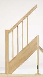 Buche/weiß grundiert (Wangen, Pfosten, Stäbe, Handlauf)