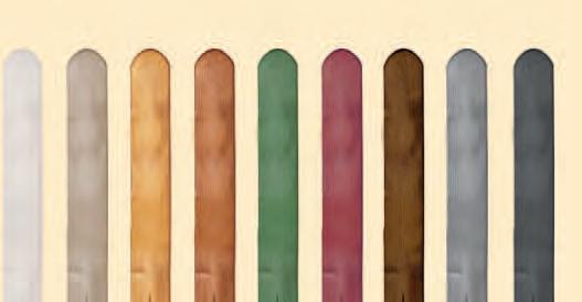 Unsere Zaunsysteme bieten wir auch zweischichtig transparent lasiert an. Das Angebot umfasst neun attraktive Farbtöne (siehe Klapper Seite 147).