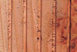 Charakter: markante Maserung, hoher Harzgehalt, viele große Äste, neigt zu Ausbrüchen, gute natürliche Dauerhaftigkeit