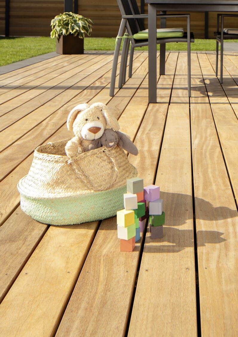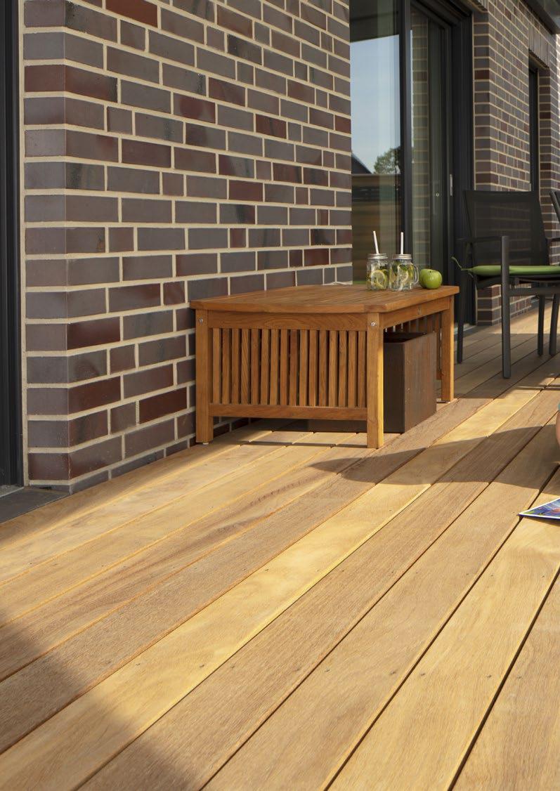 Das aus Indonesien und Malaysia stammende Holz gehört zu den bekanntesten und meist verwendeten Terrassenhölzern. Und das nicht ohne Grund: Neben den hervorragenden technischen Eigenschaften enthält das Holz natürliche ätherische Öle, mit denen sich der Baum gegen Schädlinge schützt.