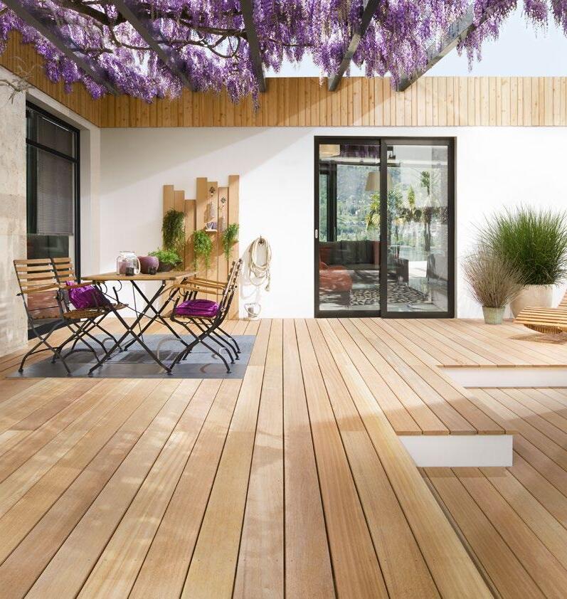 Der natürliche, lebendige Charakter von Holz kommt bei einer Terrasse aus Cumaru besonders schön zur Geltung. Denn diese aus Süd- und Mittelamerika stammende Holzart zeichnet sich durch eine schöne Maserung und ein von gold- bis rotbraun reichendes Farbspektrum aus.