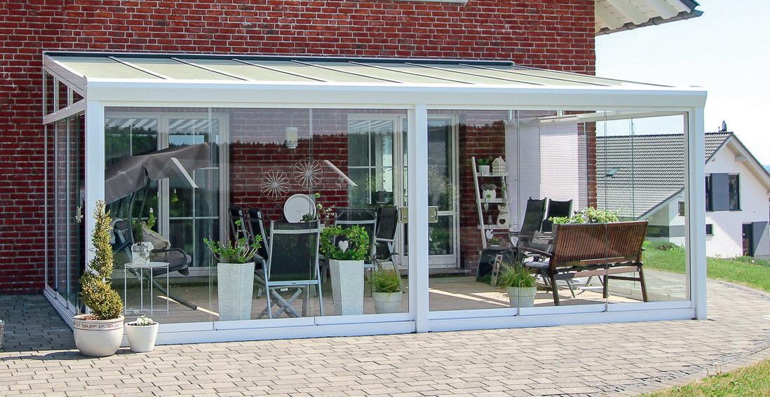 In Kombination mit Seitenelementen bzw. PanoramaSchiebetüren kann die Terrassenüberdachung in drei Schritten zu einem „Kalt-Wintergarten“ erweitert werden, um auch bei schlechter Wetterlage den Garten in einem geschlossenen Raum im Außenbereich genießen zu können.