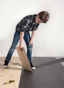 Die Paneele und Fliesen von Floorify können einfach zusammengeklickt werden. Sie verlegen sie schwimmend, auf der Floorify Comfort oder Performance Unterlage, ganz einfach, denn sie müssen nicht verklebt werden. Da die Böden so dünn sind, müssen Sie in den meisten Fällen nicht einmal Ihre Türen einkürzen. Sie können Ihren Boden einfach mit einem Teppichmesser zuschneiden. Schneiden - einklicken - fertig Niemand wird durch Lärm oder Staub gestört.
