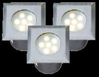 0,5 Watt LED warm-weiß, 3-fach, A+ 3.000 K Abmessung: 42 x 42 mm, Einbautiefe 46 mm, Bohrung 30 mm, Kabel 1 m, Stecker, 1 m Kupplung, in Reihe schaltbar, Material: Edelstahl, Glas, Kunststoffgehäuse, befahrbar mit PKW bis 2,5 t