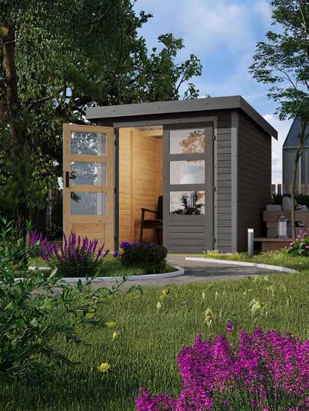 Mehr Platz, mehr Möglichkeiten! Dein Gartenhaus macht’s möglich. Ob praktischer Abstellort für Geräte und Möbel oder gemütlicher Rückzugsort im Grünen: Unsere Gartenund Gerätehäuser passen sich Deinen Wünschen an. Mit unserer vielfältigen Auswahl findest Du individuelle Lösungen, die Deinen Außenbereich optimal nutzen. So oder so schafft ein Gartenhaus neue Freiräume für Freizeit und Erholung.