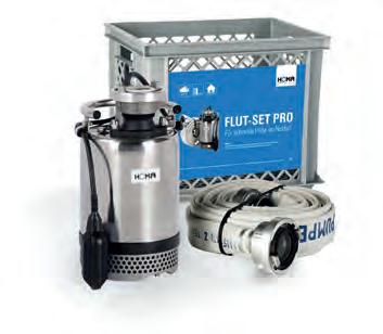 Le kit d‘inondation Pro comprend la pompe submersible pour eaux usées HBP503. Elle pompe environ 15 m³ d‘eau sale par heure, jusqu‘à une taille de grain de 6 mm. Grâce à sa construction robuste et aux matériaux résistants à l‘usure de la pompe, le Flut-Set Pro peut également être utilisé en cas d‘inondations avec des pollutions abrasives de sable ou de boue.