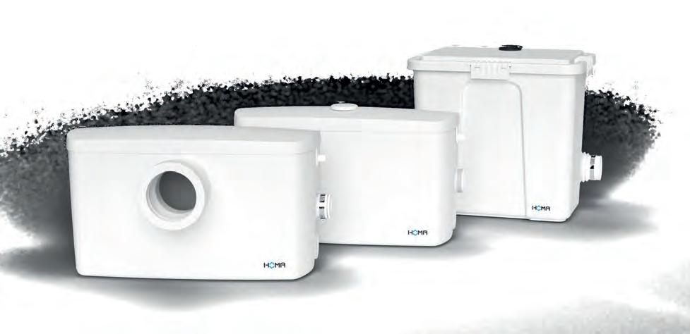 Les stations de relevage pour eaux usées sont dimensionnées pour le relevage de trois appareils sanitaires maximum. Les broyeurs WC (également disponibles pour un montage suspendu) avec systèmes de coupe puissants évacuent également les eaux usées provenant de toilettes. Tous les systèmes HOMA ont les