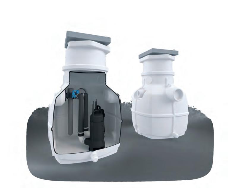 et les administrations publiques ainsi qu‘à la réhabilitation de bâtiments. Les possibilités de montage sont aussi diverses que leurs domaines d‘application, en raison de la grande diversité des modèles, universelles de multiples configurations de raccordements, du grand choix de réservoirs de collecte de différents volumes et de la large gamme d‘accessoires.
