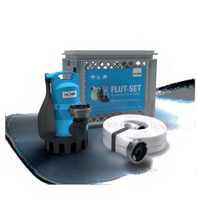 En cas d‘inondation soudaine, une action rapide est nécessaire le kit inondation est immédiatement prêt à l’emploi. Placez simplement le panier de transport contenant la pompe au sol, fixez le tuyau de refoule ment renforcé à l‘aide du raccord rapide et branchez la fiche secteur. Le pompage commence immédiate ment – même jusqu‘à une hauteur de plus de sept mètres.