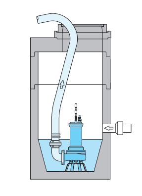 Universalaufstellung für den Tauchbetrieb in Grubenund Schächten, bei zeitlich begrenztem Einsatz, im Not- oder Service-Betrieb. Einsetzbar mit Schlauchoder Rohrdruckleitung.