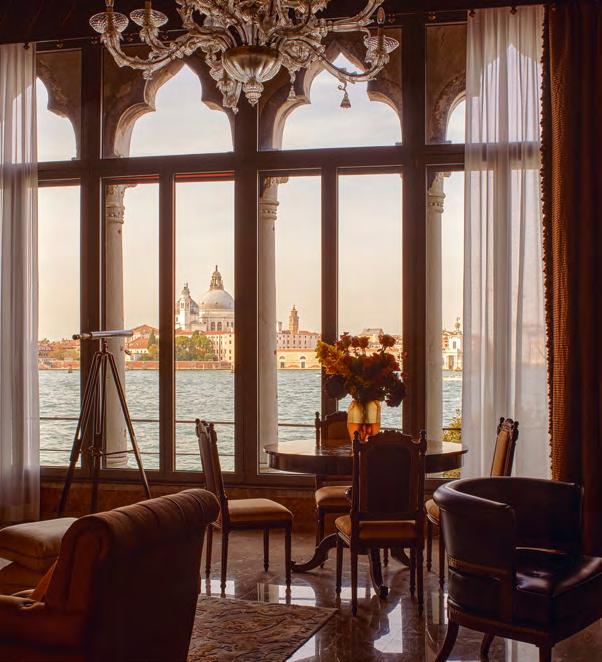 terrazzo, and bespoke Venetian fabrics. There’s a fresh sense of personality in each space, from the modernist flourishes in the lighting to the curated art and sculptural furniture. Rooms in the older part of the hotel remain more traditional with silk brocades, hand-painted headboards, and marble-clad bathrooms. Whatever your accommodation, they come with balconies or terraces that open out to lagoon views, the gardens, or the pool.