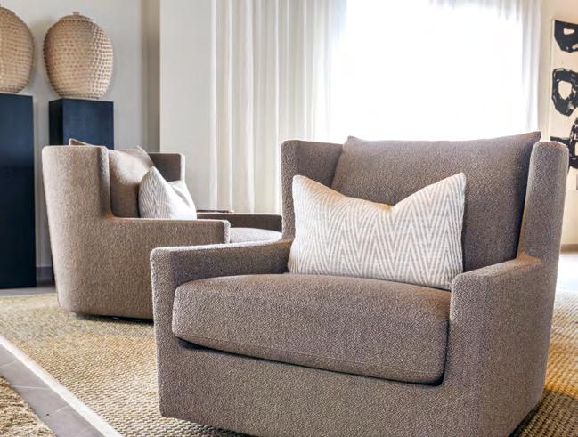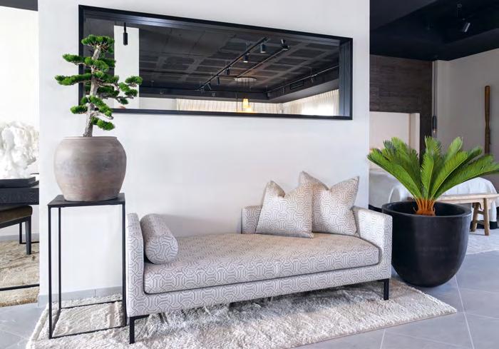 Below Bring the comfort of your living room outdoors with Slettvoll’s Elm sofa. Featuring a modern design in two sizes including a chaise, its softly shaped bronze frame, tight rigging, and plush, curved cushions create a captivating ensemble. Equipped with voluminous Quick Dry cushions, Elm blends durability with style, while removable, washable covers ensure easy care. Shown here with their award-winning Montego chair, which features an expertly woven linencoloured backrest and bronze stainless-steel frame with a Fontelina fabric cushion. The Slettvoll showroom is located in C.C. El Paraíso in Estepona (www.slettvoll.com).