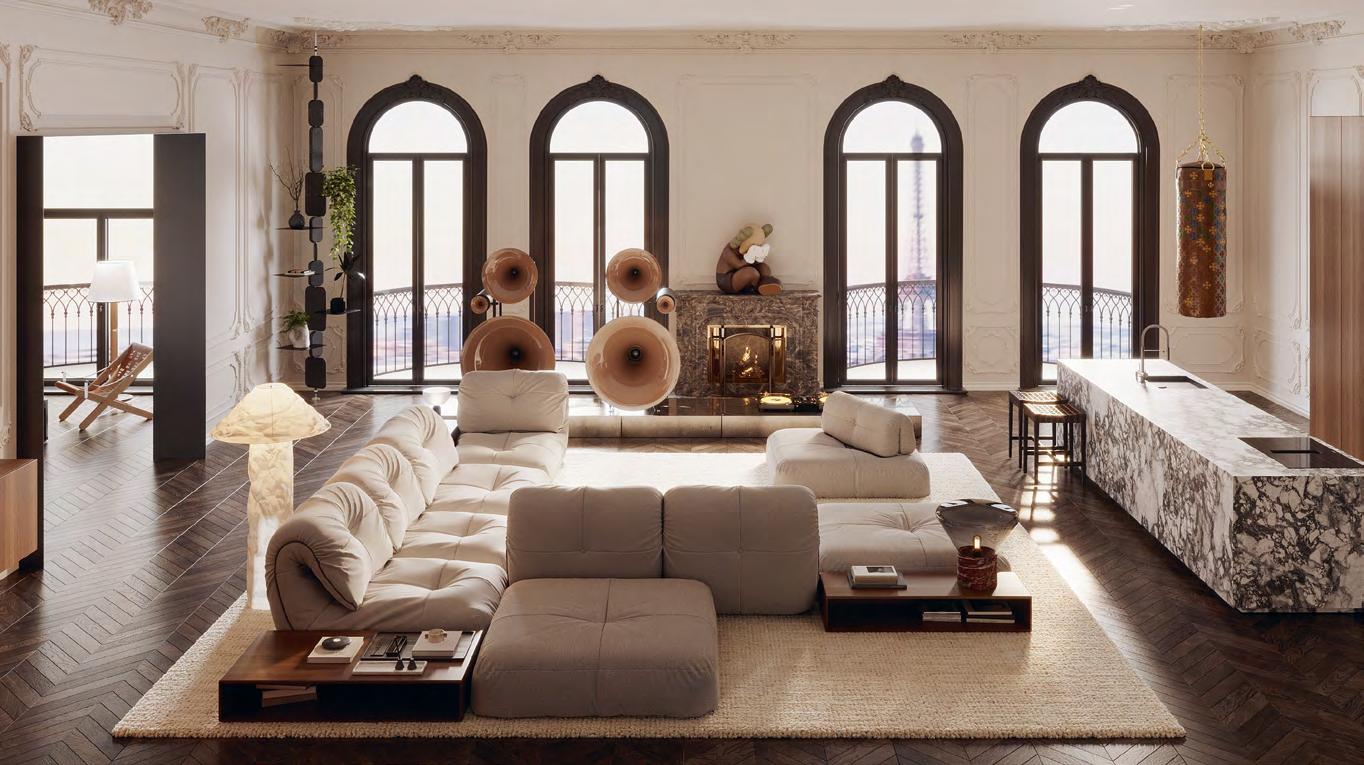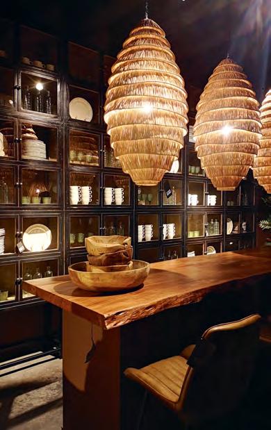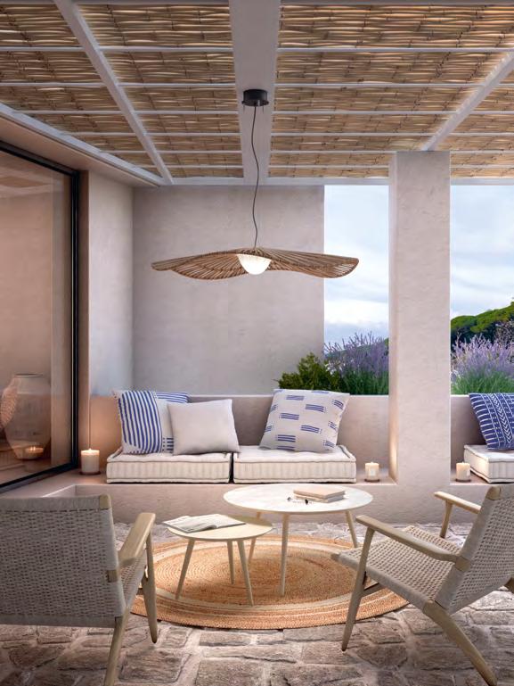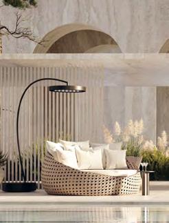 Bottom Right Mediterrània is a gentle wave of light, inspired by the sea, breeze, and warmth of the Mediterranean. Its soft curves and organic character bring serenity to geometric spaces, offering a glow that feels as natural as sunrise or sunset. In its outdoor version, a durable synthetic fibre shade preserves its poetic presence while ensuring resilience in openair settings. Bover is available from Fernando Moreno in San Pedro de Alcántara (www.fernandomoreno.es), Gunni & Trentino in Marbella Club (www.gunnitrentino.es), and Ambience Home Design in C.C. La Poveda in Marbella (www.ambiencehomedesign.com).