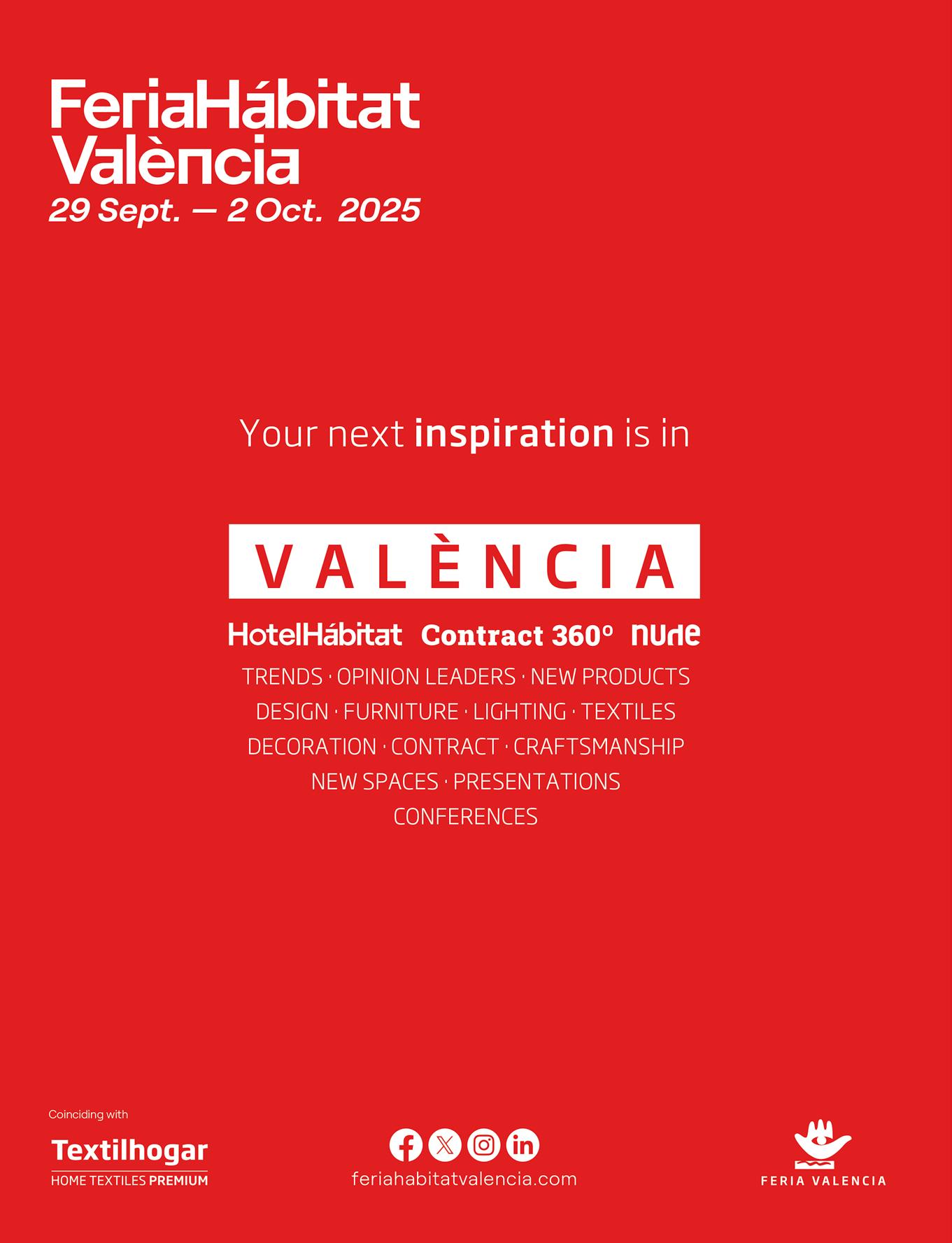 No surprise, then, that these trends will be showing up on the international stages of Feria Hábitat València in September too. Running from 29th September to 2nd October, the event is Spain’s leading design fair and one of the most important in Europe, and, once again, we are delighted to be an official media sponsor. We will, of course, be bringing you highlights of the innovations and trends setting the tone for the seasons ahead in our winter issue.