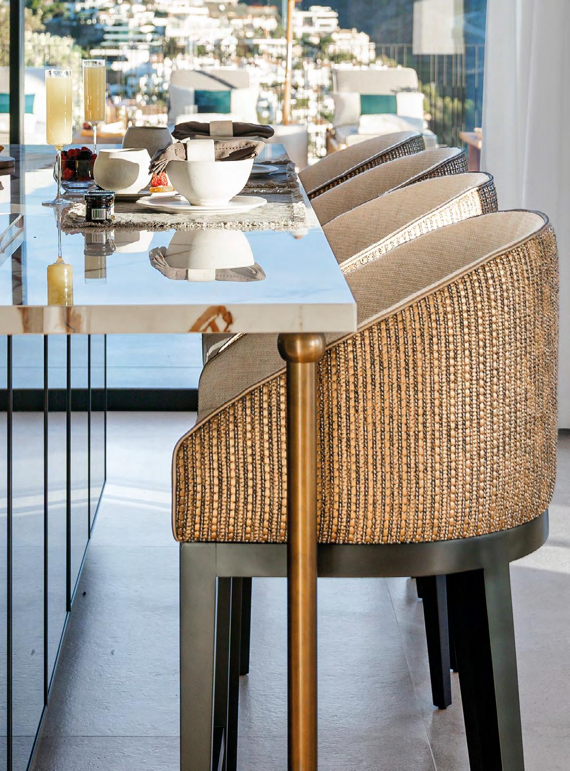 Panigiri by Extremis offers a twoin-one seat for everyone with this versatile dining table that provides a backrest for more formal dining or drinks, or a bench-like seating experience. Extremis is available from Acoola in Pol. Ind. San Pedro de Alcántara (www.acoola.eu) and through Gunni & Trentino in Marbella Club (www.gunnitrentino.es) and Siesta Interior Design located in Centro Plaza in Nueva Andalucía (www.siestainteriordesign.com).