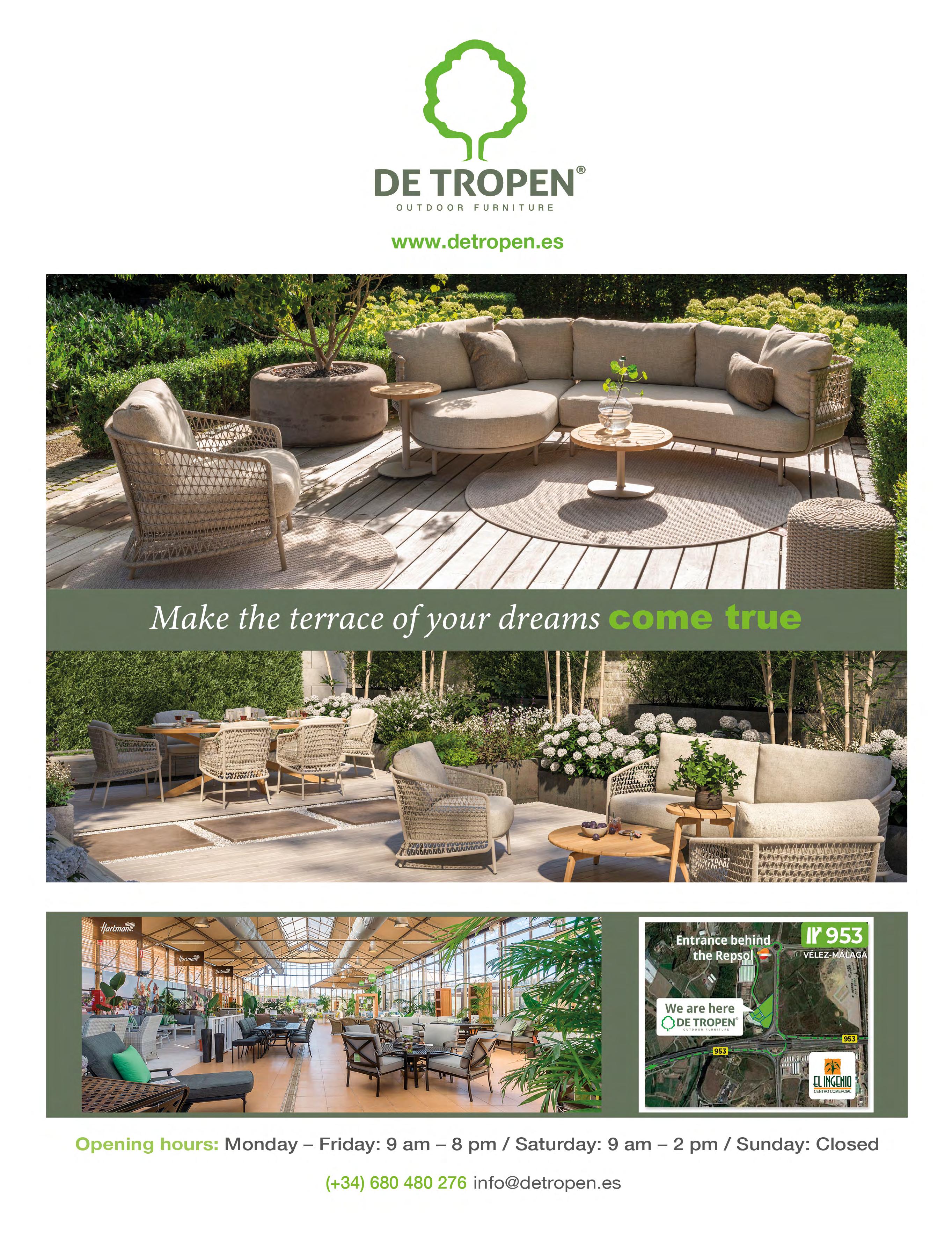 4 Seasons is also available through A Cielo Abierto in C. de Negocios Oasis on Marbella’s Golden Mile and C/ Policía Nacional 17 in Estepona (www.acieloabierto.net) and Ideal Furniture in Avda. Ricardo Soriano 68 in Marbella (www.idealfurniture.es).