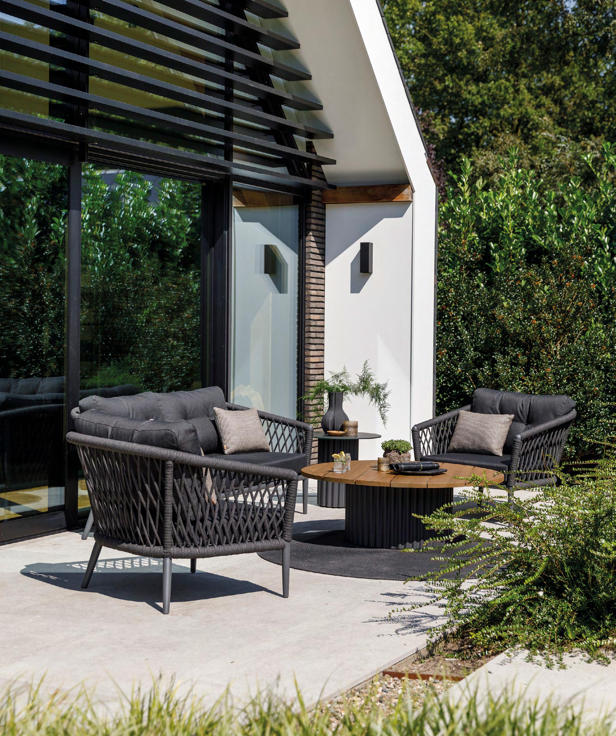 It is no surprise that the use of natural materials has come to the fore in recent years, effortlessly melding with the environment to create a true sense of serenity and connection to the earth. Colour has entered into the world of upholstery, adding personality and charm to seating. Whether it is a pop of vibrant hues or subtle tones inspired by nature’s palette, these fabrics breathe life into outdoor living areas, infusing them with character and warmth. In the face of changing climate, outdoor furnishings stand resilient, with weatherresistant materials designed to withstand the elements. From durable metals to all-weather wickers, these materials ensure longevity and endurance without compromising on stylish aesthetics or comfort.