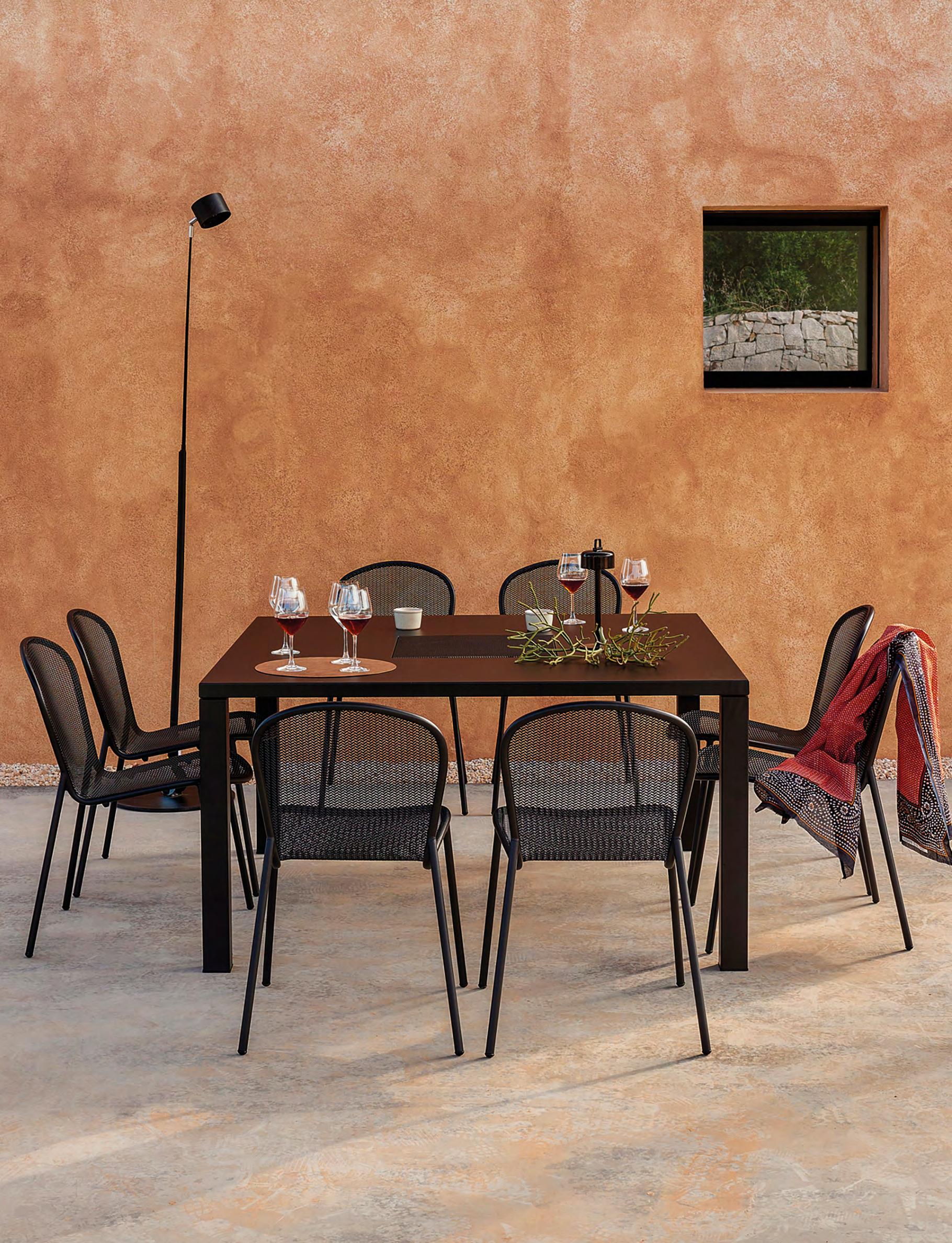 Quadro, by Emu D&S Lab, is an eight-seater square steel table that features a removable central insert, available in perforated sheet metal, FSC teak or stoneware. It is shown here with Emu’s Ronda X dining chairs, which come in a wide range of colours. Emu is available from Outdoor Concepts in San Pedro de Alcántara ( www.outdoorconcepts.es ).