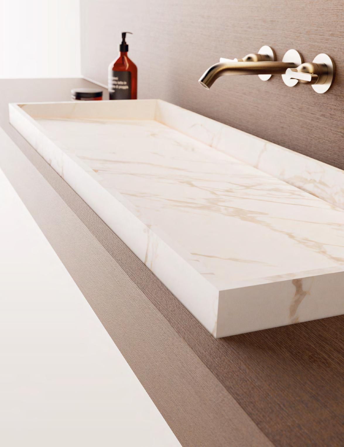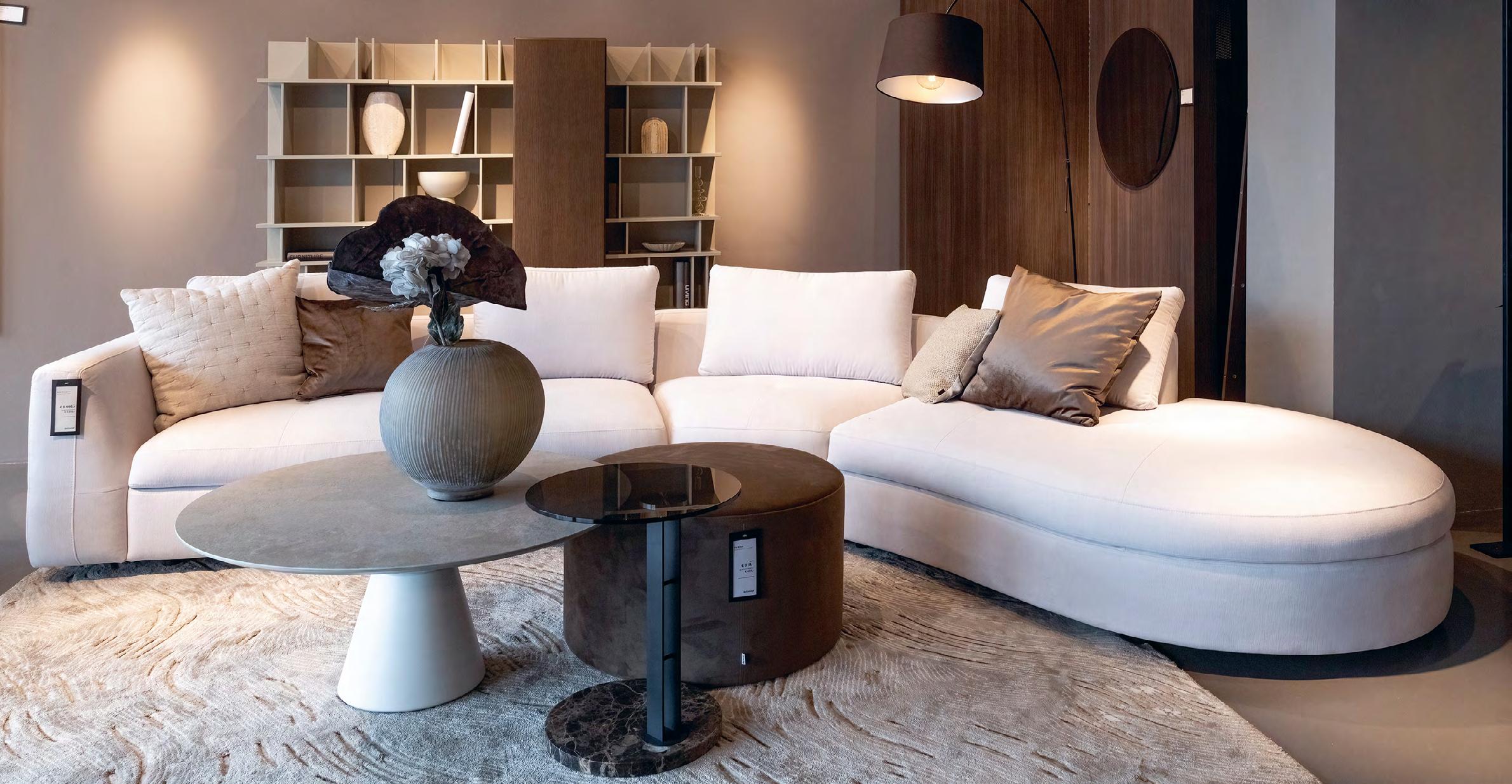 On the main floor, customers will find a central corridor connecting three distinct environments: two residences and a contract space. One of the residences, Luxury House, exudes an elegant style dominated by marble, whether in ceramic or natural stone. The other one, Colonial House,