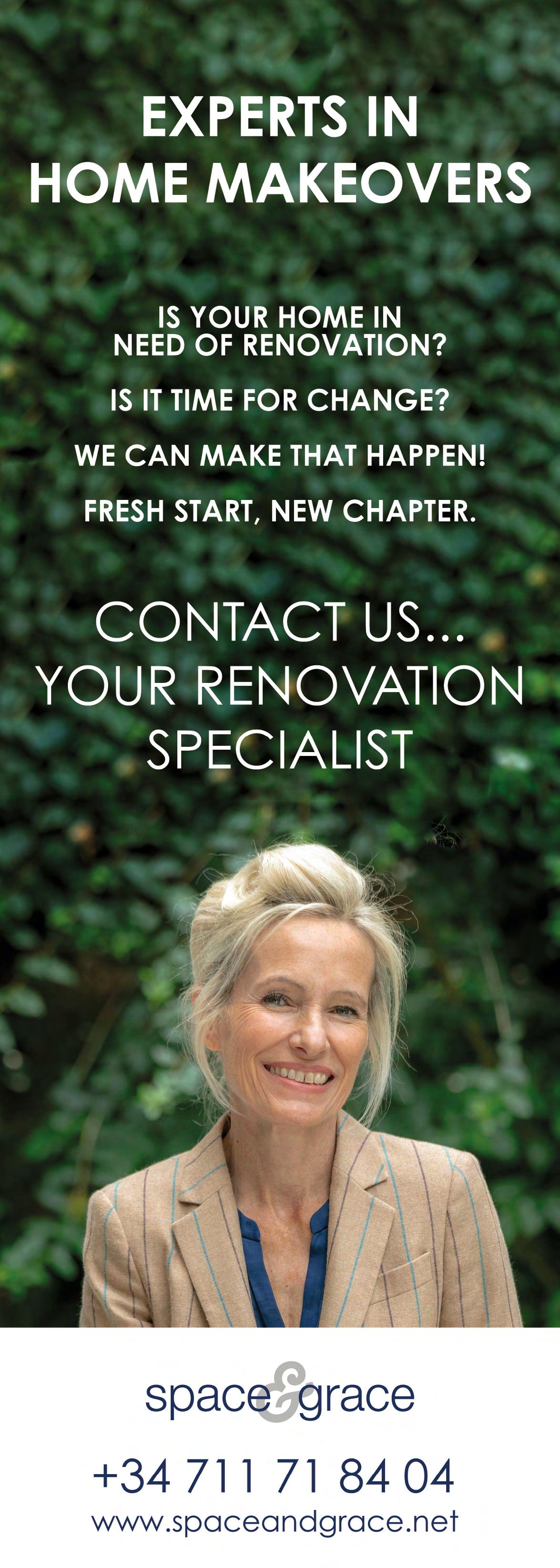The publisher makes every effort to ensure that the magazine’s contents are correct, but cannot accept responsibility for the effects of errors or omissions. Home & Lifestyle Magazine reserves the right to refuse to publish any advertisement deemed detrimental to the best interests of the community or that is in questionable taste, and cannot accept responsibility for the claims, goods or services of advertisers. The views and opinions expressed by contributors in Home & Lifestyle Magazine do not necessarily reflect the views of the editor or the publisher. Products and prices mentioned are subject to change without prior notice. No part of this magazine may be reproduced or copied in any way without the prior written consent of Home & Lifestyle Magazine. Home & Lifestyle Magazine is delivered across the Costa del Sol and Gibraltar. Subscription rates are €60 per year.