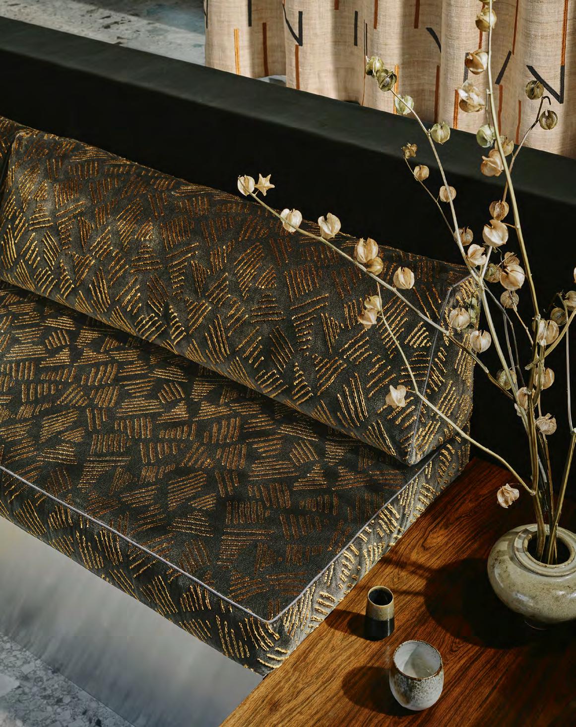 influenced by the art deco period, with texturised fabrics, geometric patterns, and bright colours inspired by South American and tropical culture. Contardi is available from Outdoor Concepts (www.outdoorconcepts.es) and Alison Bethell Collins Interior Design (www.alisonbethellcollins.com), both situated in San Pedro de Alcántara.