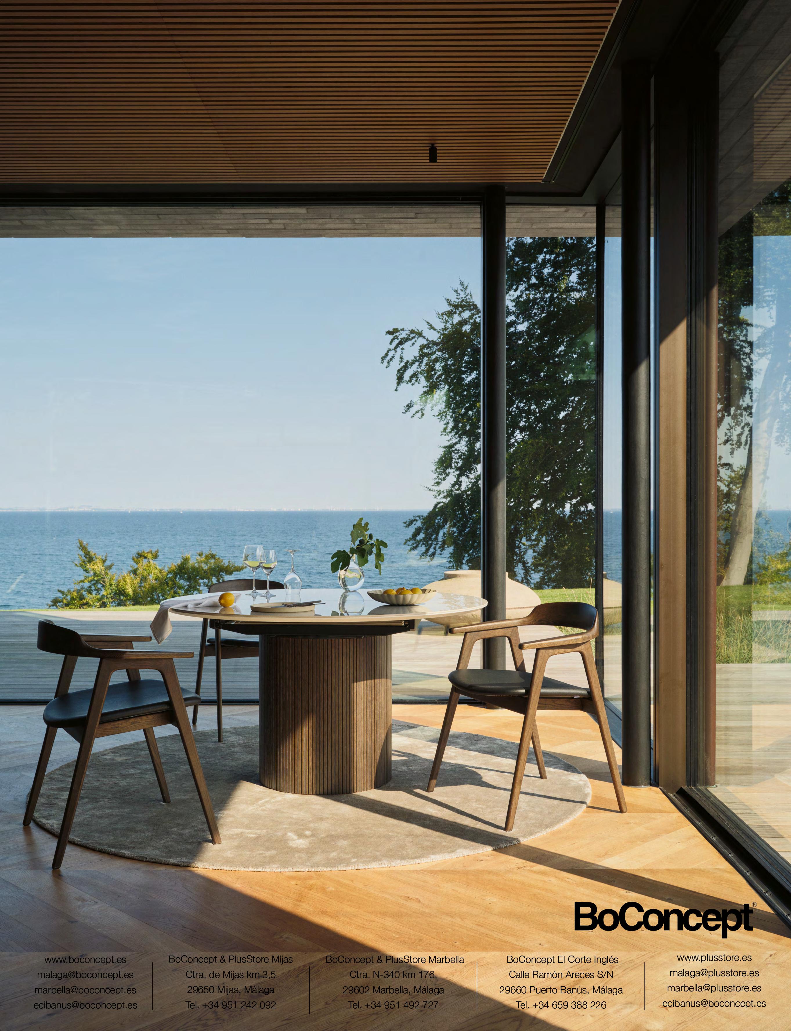 Ethnicraft’s modular N701 seating system with footstool is as versatile as it is visually attractive. Designed by Jacques Deneef, the timeless design is available in various colours and materials. Shown here with their Boomerang table which comes in two sizes. BoConcept Plus Store on the Mijas Road and C. de Negocios Oasis on Marbella’s Golden Mile (www.plusstore.es), and Metamorfoza Home in Pol. Ind. Nueva Campana 53 in Nueva Andalucía (www.home-metamorfoza.com) are official retailers of Ethnicraft.