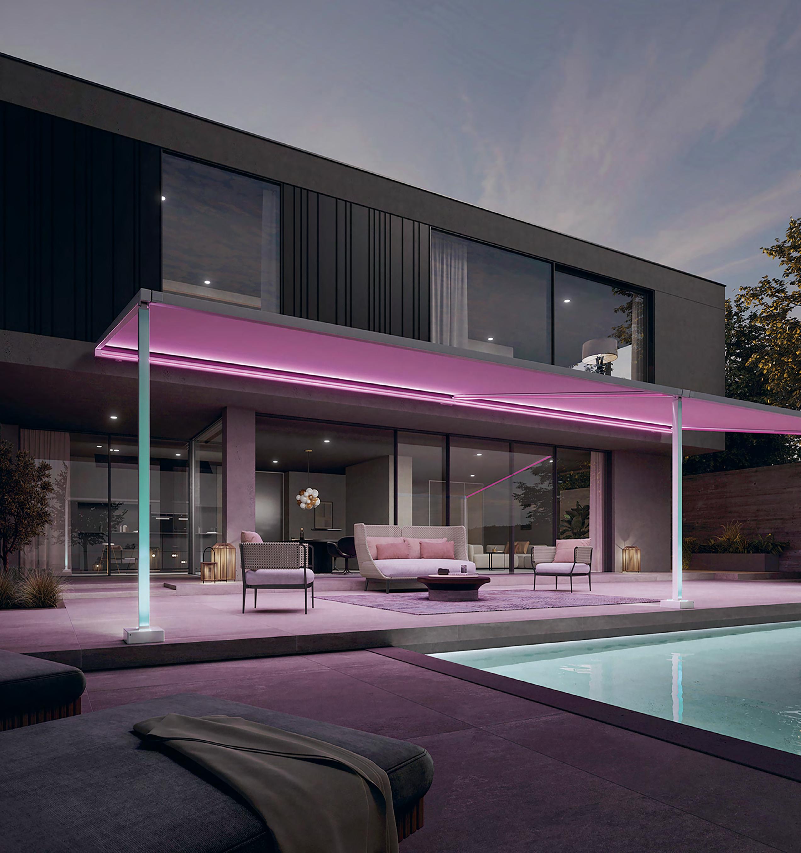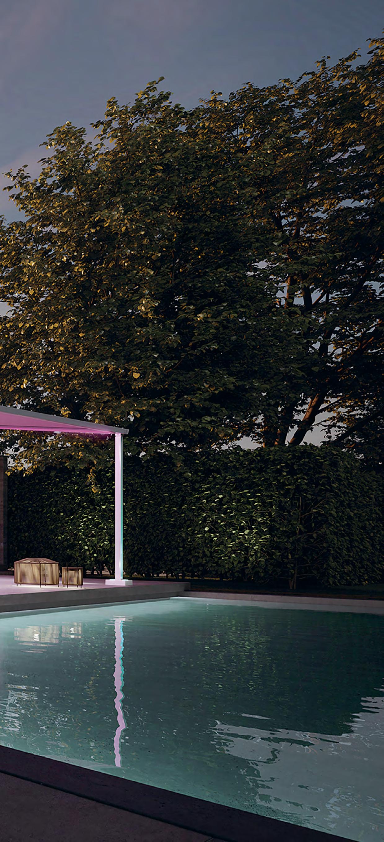 The advanced LED colour lighting technology by Markilux allows a fully-customised lighting experience. Homeowners can adjust brightness and colour temperature in blue, red, green, and white tones to craft unique ambiances. Whether setting the mood for a relaxed evening or adding vibrancy to an outdoor gathering, the result is a beautifully tailored and inviting space. Markilux is available exclusively by appointment at Arte del Lusso’s outdoor showroom in Pol. Ind. San Pedro (www.artedellusso.es).