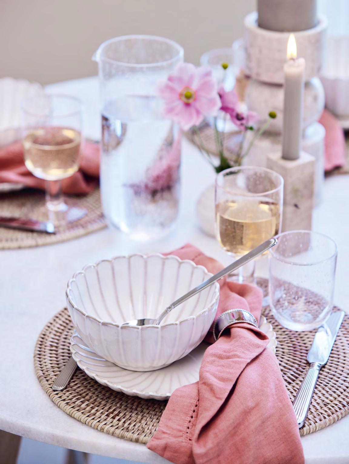Above Right The Camille tableware collection by Lene Bjerre offers timeless elegance in high-quality porcelain, perfect for any occasion. With soft ivory and beige tones, it brings a refined, feminine touch to the table. Durable and stylish, the collection includes plates, platters, and cups, all microwave and dishwasher safe. Escandi Design, situated on the Mijas Road, is an official retailer of Lene Bjerre (www.escandidesign.com).