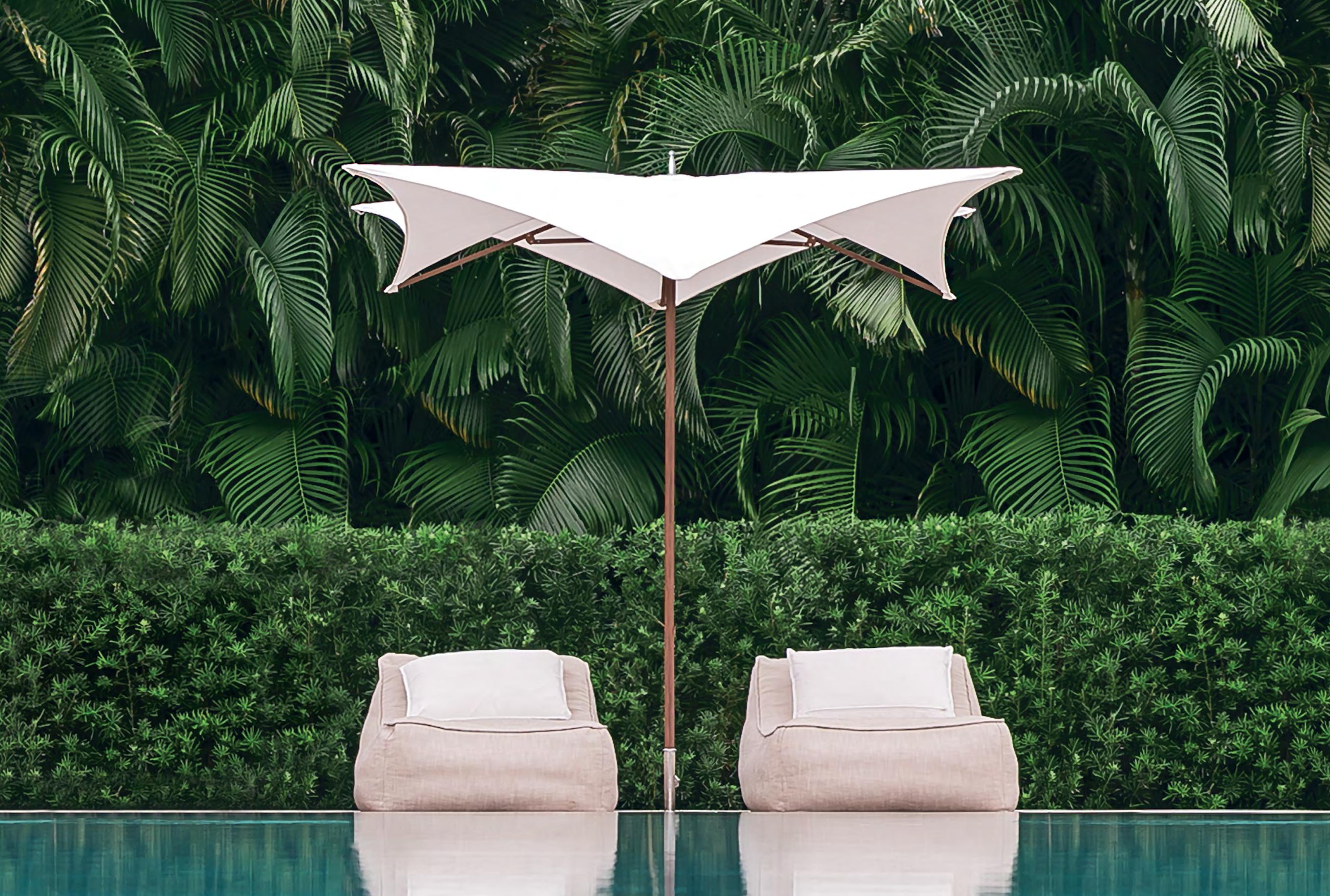 Left Tuuci’s Ocean Master M1 pagoda-style parasol has a timeless design that meets modern innovation. Its patent-pending gas-piston, self-tensioning system ensures a flawlessly taut canopy, seamlessly stretched over advanced, precision-crafted struts. Tuuci is available from Outdoor Concepts at the top of the Boulevard in San Pedro de Alcántara (www.outdoorconcepts.es), Escandi Design on the Mijas Road (www.escandidesign.com), and Gunni & Trentino in Marbella Club (www.gunnitrentino.es).