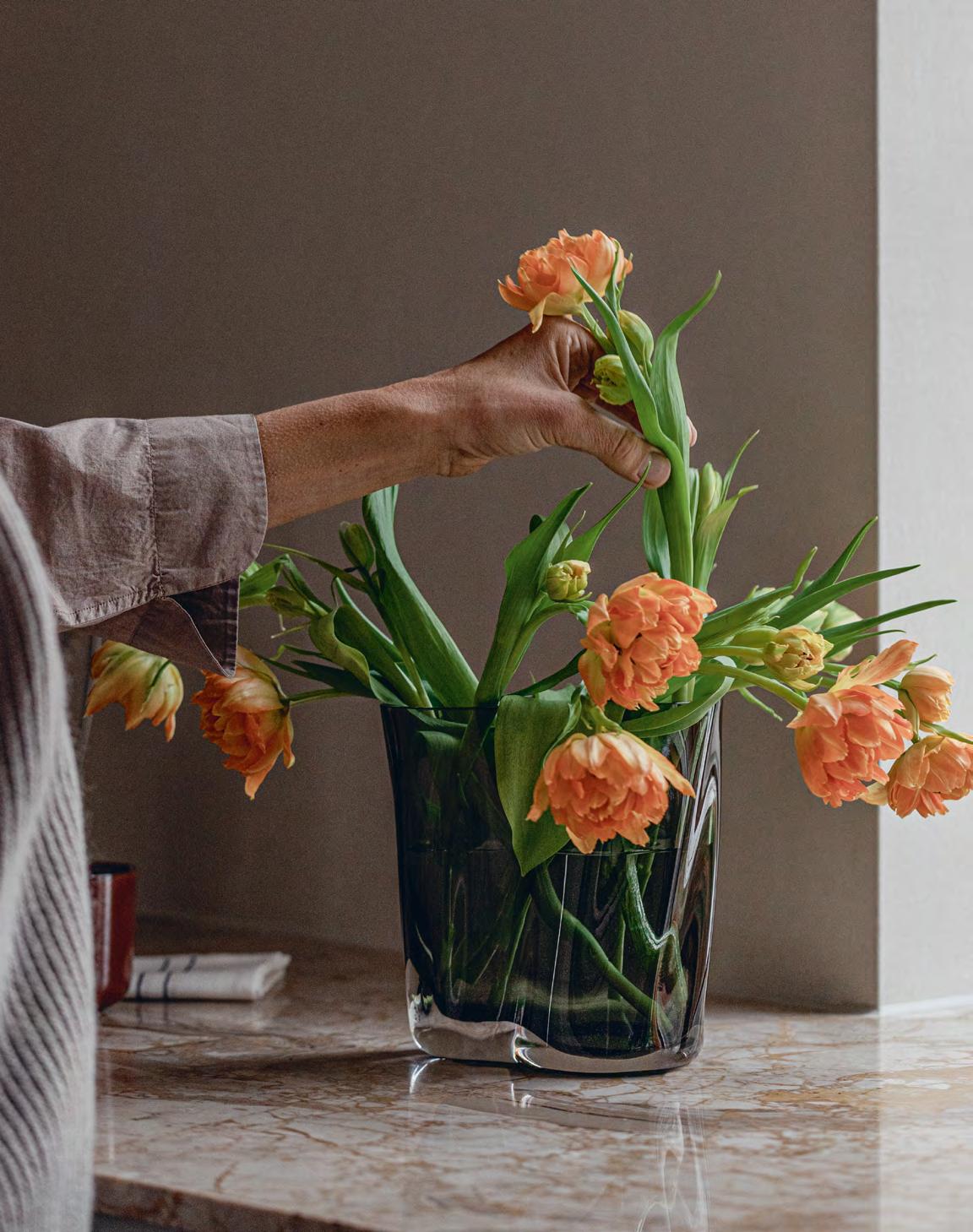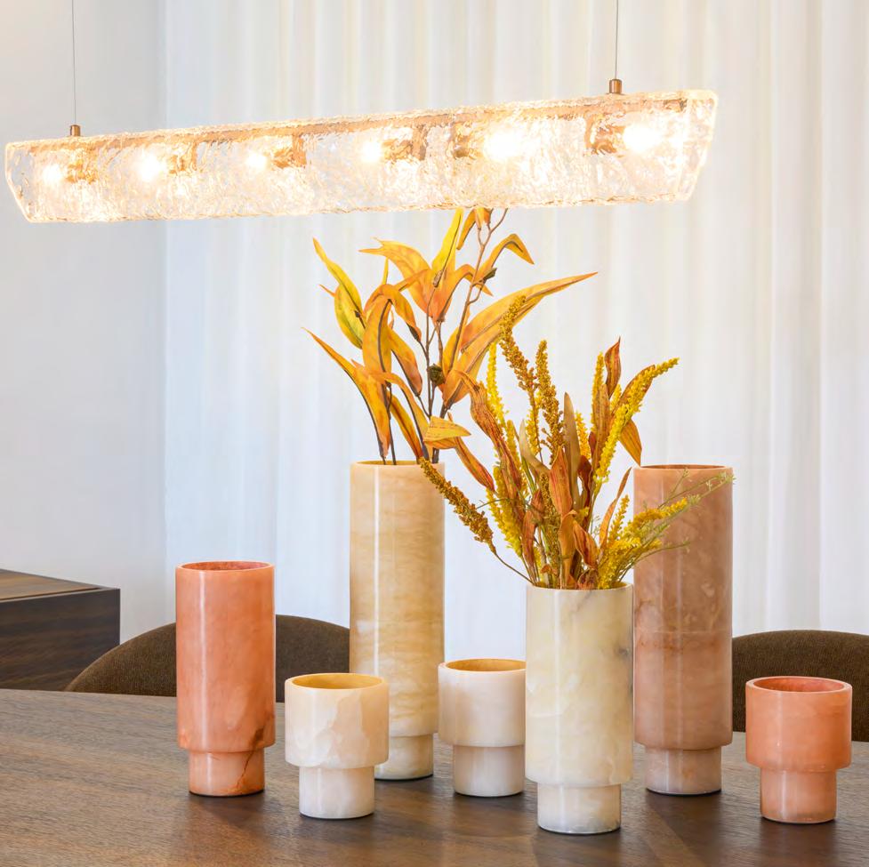 Below Left Gabriel Tan’s Aer Collection blends simplicity, sculptural beauty, and function. Inspired by swirling air, the rippled, smoke-hued glass vase exudes an ethereal charm, embracing flowers or standing alone as a statement piece. Audo is available from BoConcept Plus Store on the Mijas Road and in C. de Negocios Oasis in Marbella (www.plusstore.es), Escandi Design on the Mijas Road (www.escandidesign.com), and The Majlis in C.C. La Poveda in Marbella (www.themajlis.es).