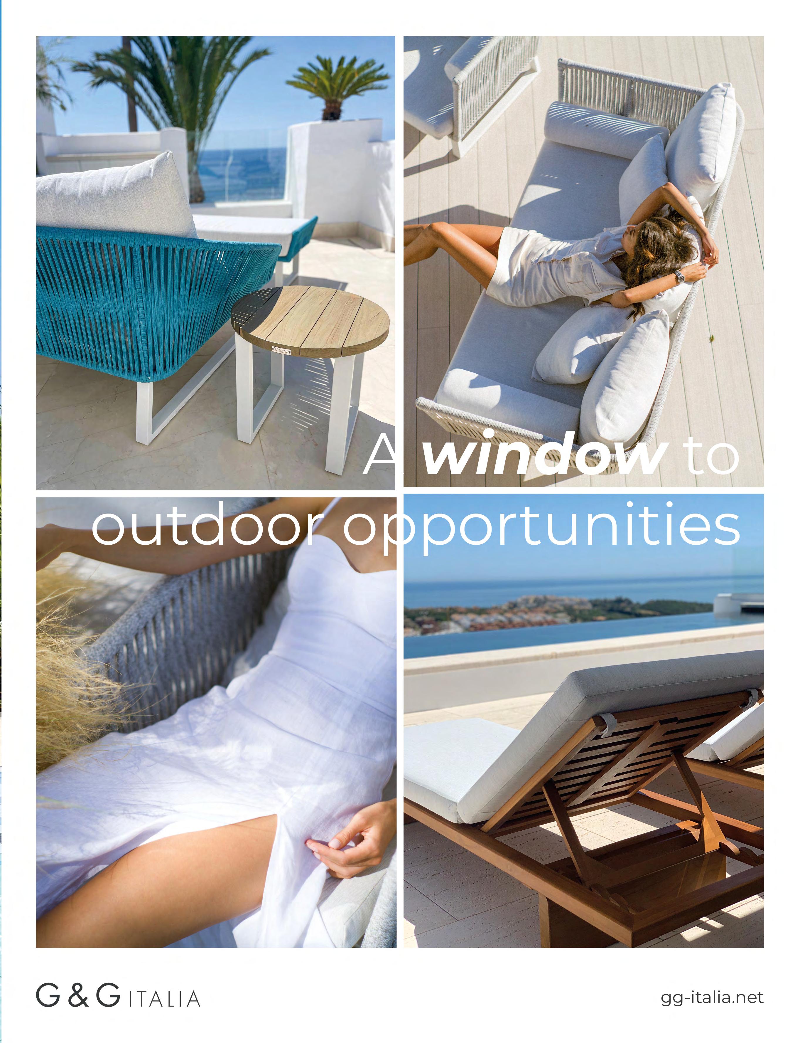 After a tireless two years of dedicated development, G&G Italia has launched an exclusive collection of more than 30 new Italian fabrics, showcasing exceptional quality and design. The new collection also features innovative cushions made with quick-dry foam, offering a thicker, softer feel that brings indoor comfort to outdoor living. With the summer season just around the corner, G&G Italia will expand its collection with a new line of outdoor accessories including blankets, rugs, and dining table accessories. www.gg-italia.net