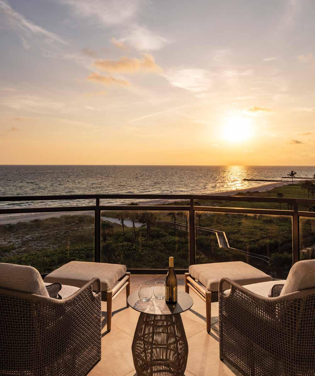 Lanai Sunset: Although the interior of this condo is breathtaking, the homeowners can’t resist the allure of the stunning Gulf views that can be enjoyed from the multiple lanais on the west side of the penthouse. The outdoor furniture from JANUS Et Cie is not only stylish and comfortable, but also durable enough to withstand exposure to the sun and weather.